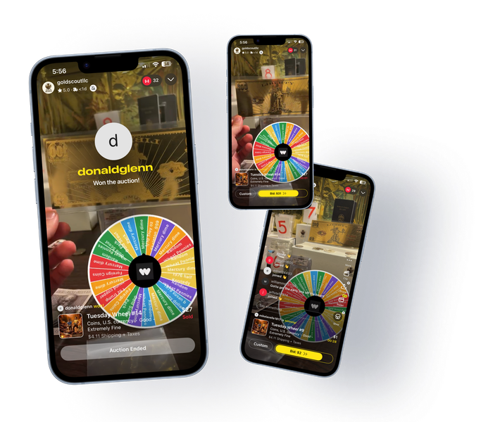 Packs are filled with rare coins and precious metals. Spins start at $1 bids.